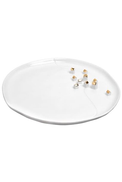Dit leuke kleine bord van Räder heeft een prachtig sterren reliëf en een klein zilveren ster detail. Hij is gemaakt van prachtig wit aardewerk en is deels geglazuurd.
